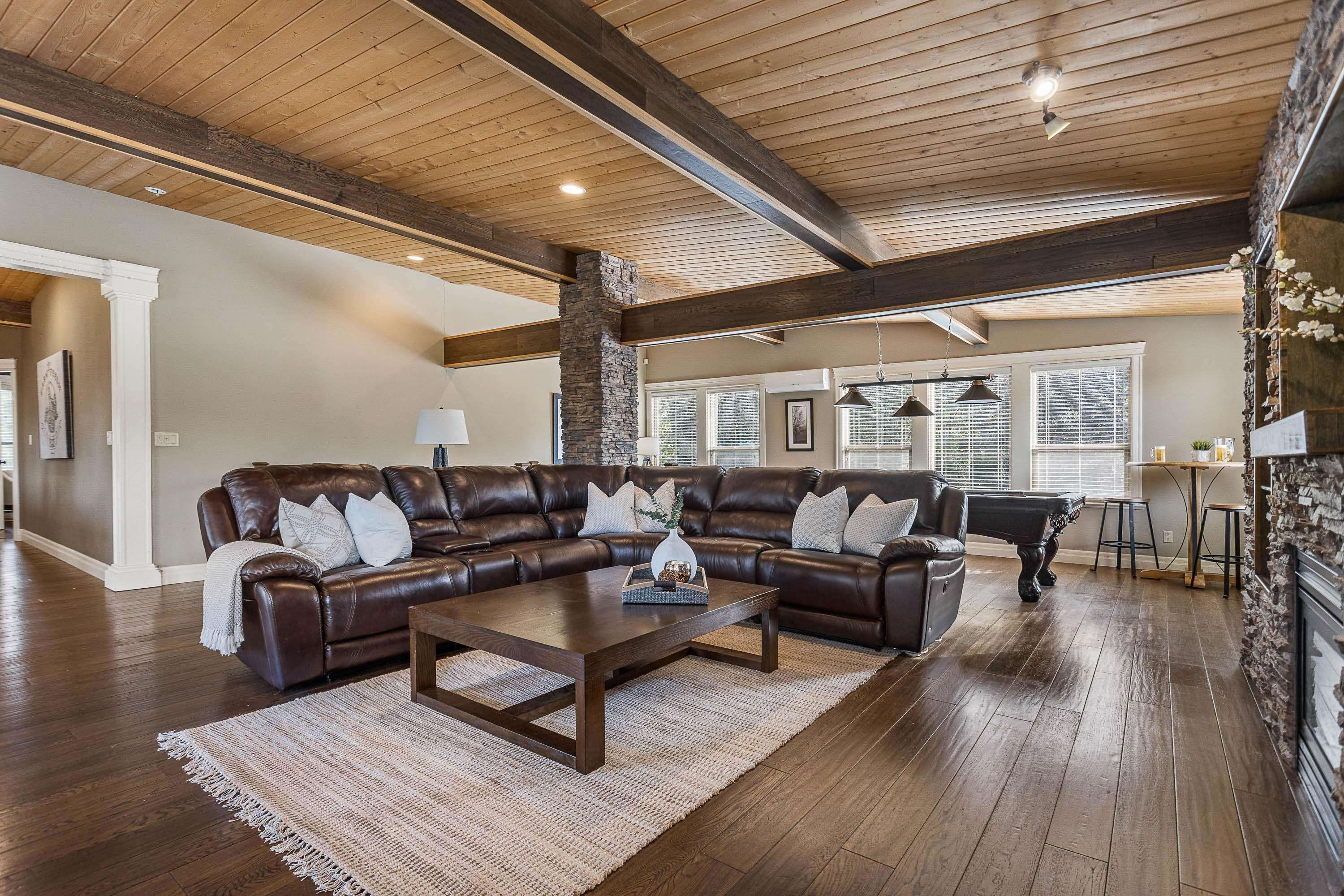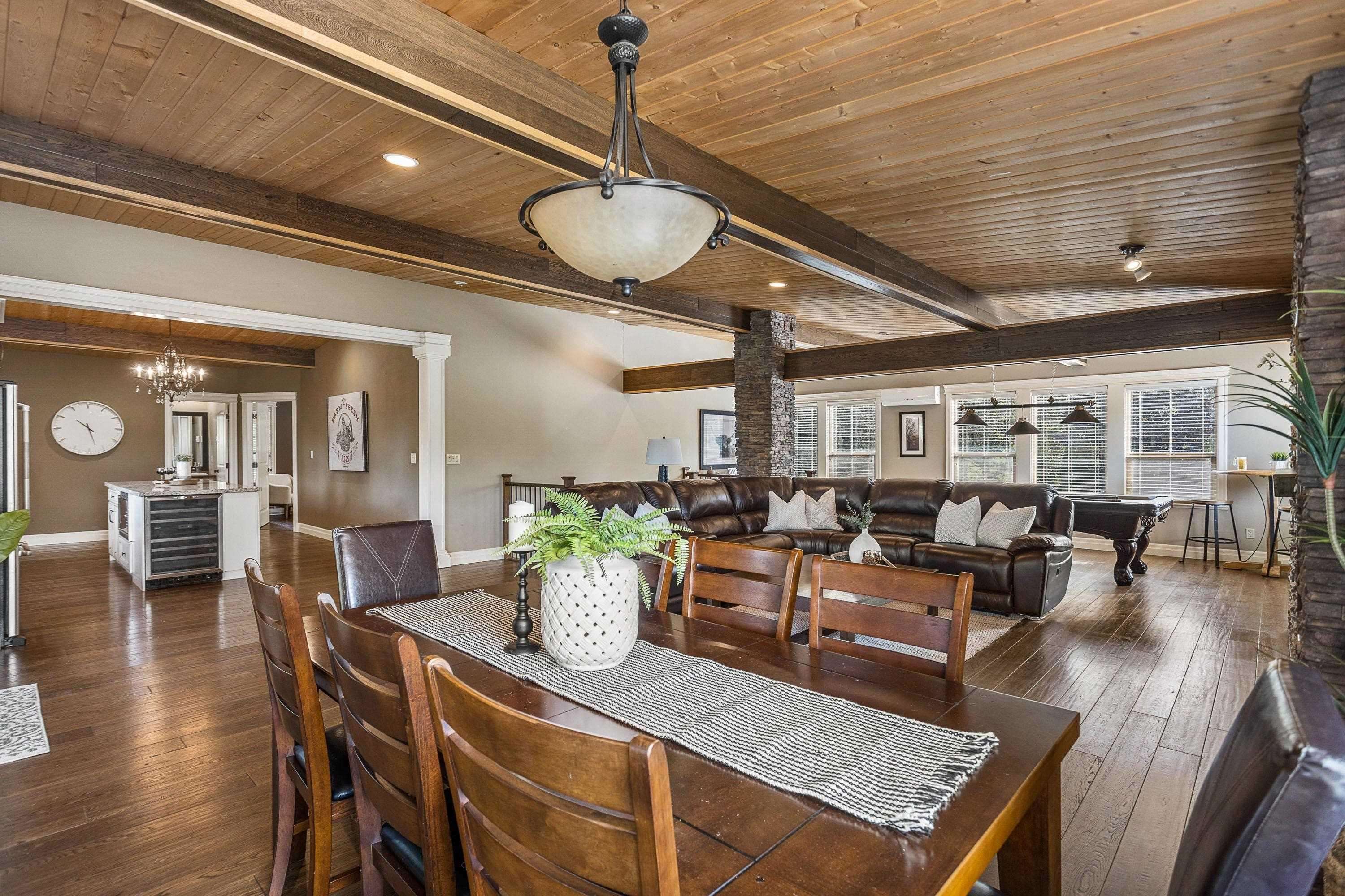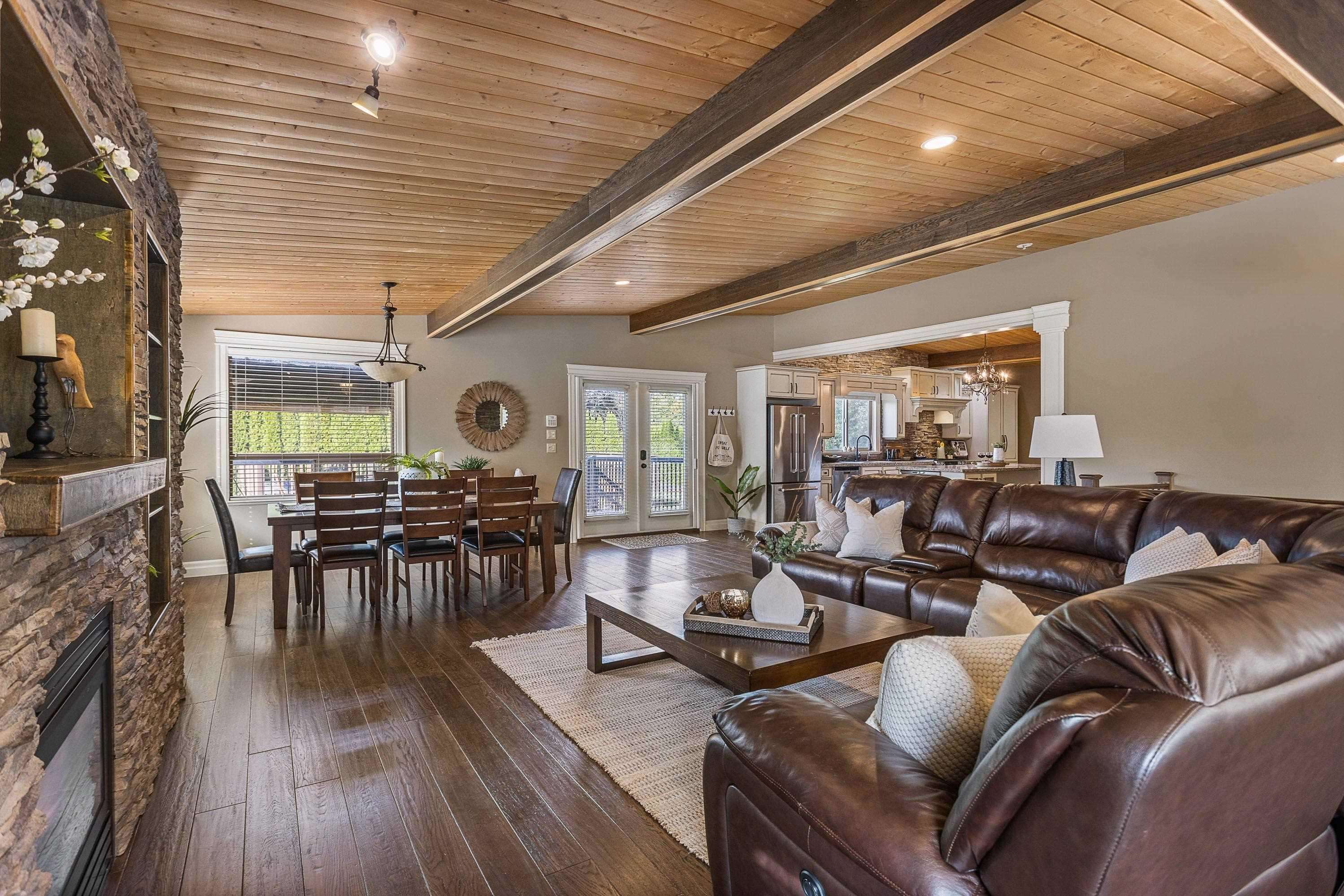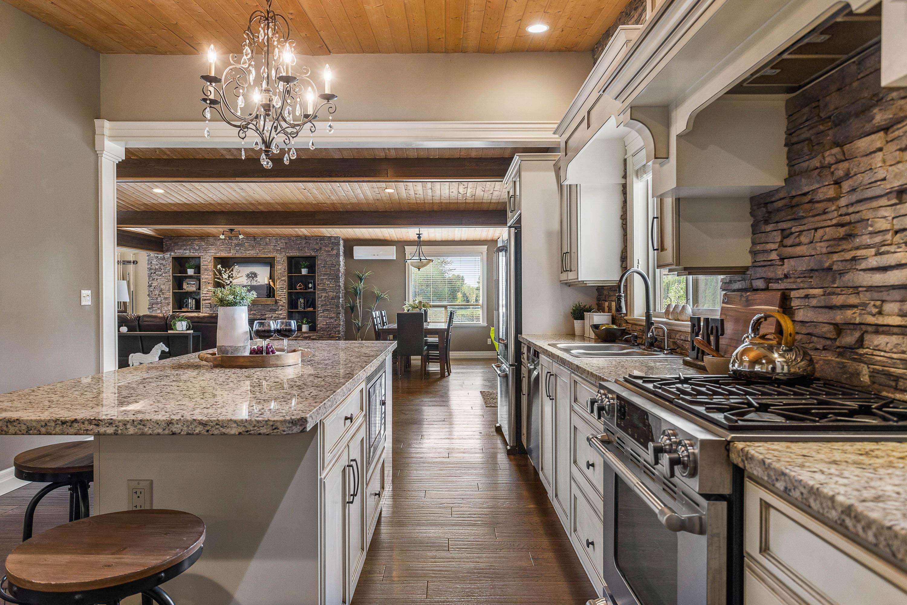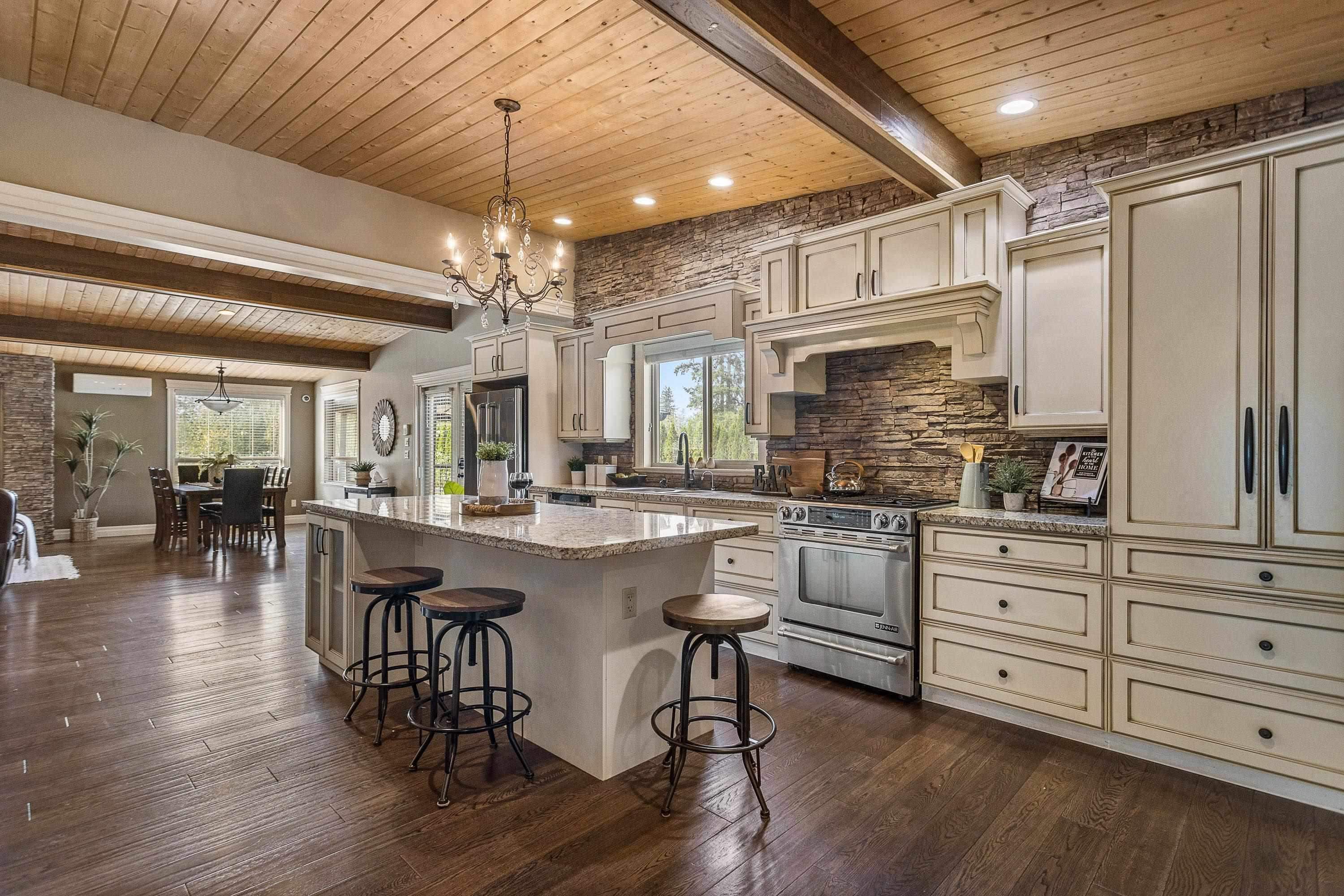 1.11 Acres in Walnut Grove – rare private fenced parcel w/ electric gate. 2 Story 3,008 SQ/FT home w/ vaulted pine ceilings, rustic hardwood, floor-to-ceiling stone fireplace, open layout. Gorgeous kitchen w/ antique white cabinetry, travertine backsplash, granite counters, large island & Jenn Air appliances. Large master with walk-in. Fully finished basement: 3 beds, laundry, media room, separate entry ideal for suite. Ductless split heat/cool. Deck, above-ground pool, 60x120 arena now parking. RU1 in ALR ...