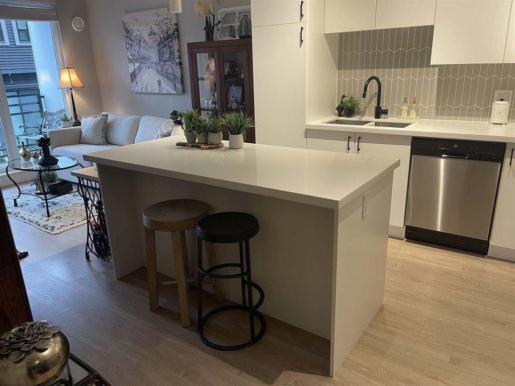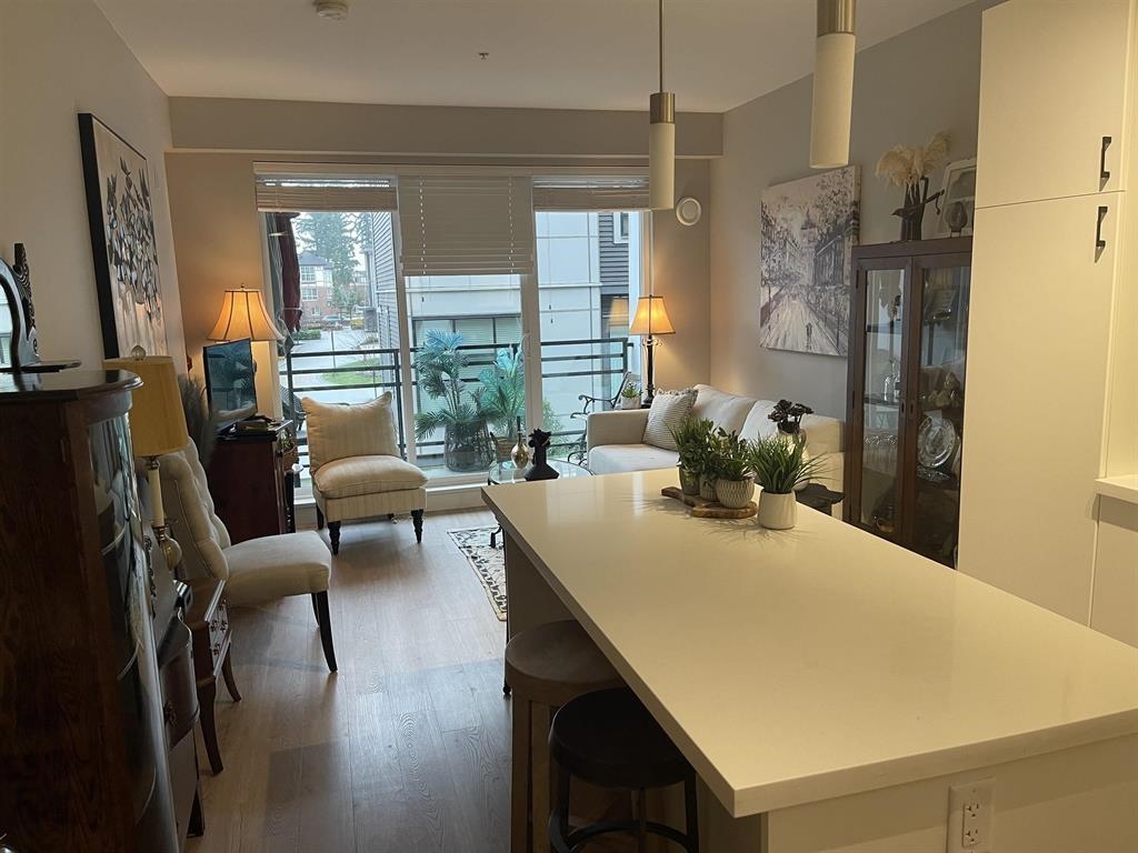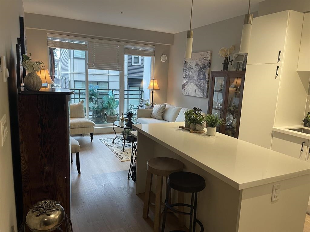 Best Price in the Development, Welcome to Hudson & Singer in the heart of Willoughby. This spacious 1-bedroom, 1-bathroom home features an open layout with a large kitchen island , sleek finishes, perfect for entertaining, spacious east-facing balcony overlooking the quiet side of the building. Just steps to Willoughby Town Centre with its shops, restaurants, and groceries, and across from Yorkson Community Park. Complete with 1 parking space and1 storage locker. Low maintenance fees. Two pets allowed and r...