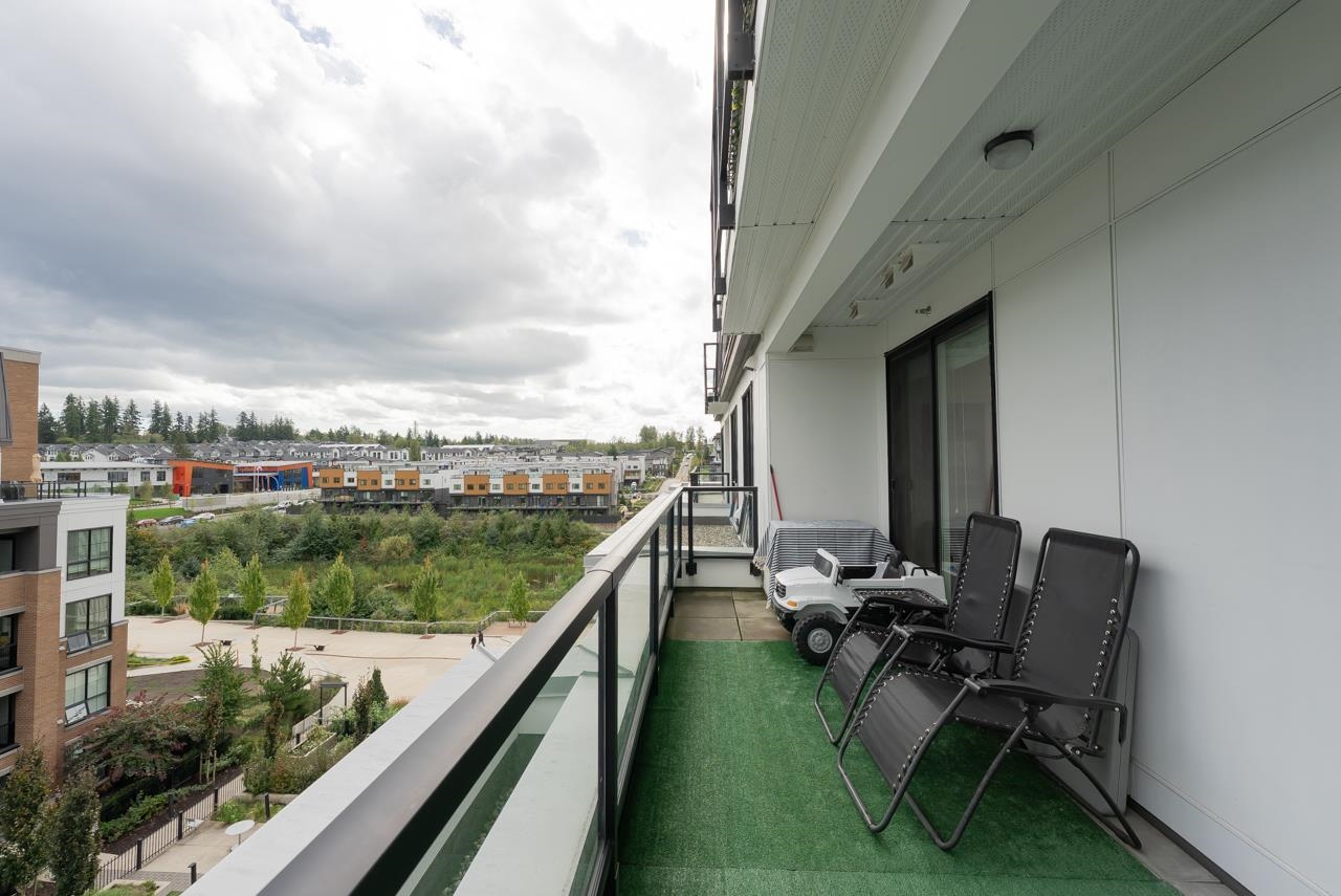 Welcome to Latimer Village by VESTA Properties. This stunning, well-maintained 2-bedroom, 2-bathroom plus den unit offers spacious living with large windows, 9' ceilings, quartz countertops, and high-end appliances. Enjoy the open-concept design filled with ample natural light. The large patio, accessible from both bedrooms, is perfect for sunbathing and enjoying summer days. An oversized parking stall is an added bonus. You'll appreciate the walking distance to Carvolth Exchange, restaurants, Josette Dandu...