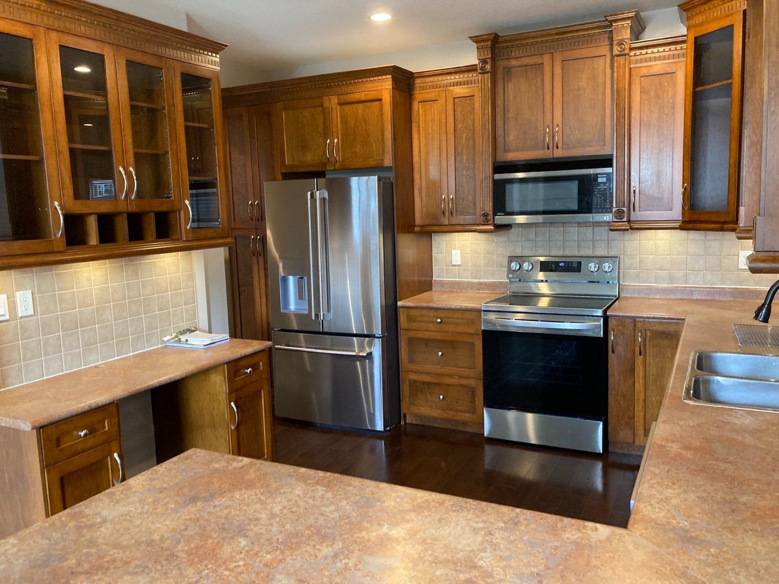 UPPER SUITE ~ 4-bedroom, 3-bathroom suite in an executive house. First-class kitchen with solid wood cabinets, built-in pantry, and stainless steel appliances. Tastefully updated and maintained throughout. Hardwood floors and plush carpet. 2 gas fireplaces. Situated on a quiet corner lot in a family-oriented neighborhood, yet close to parks, schools, and transit. Shared yard and garden shed with basement suite. Available May 1st. Utilities not included (70%). Street Parking. No pets/smoking.