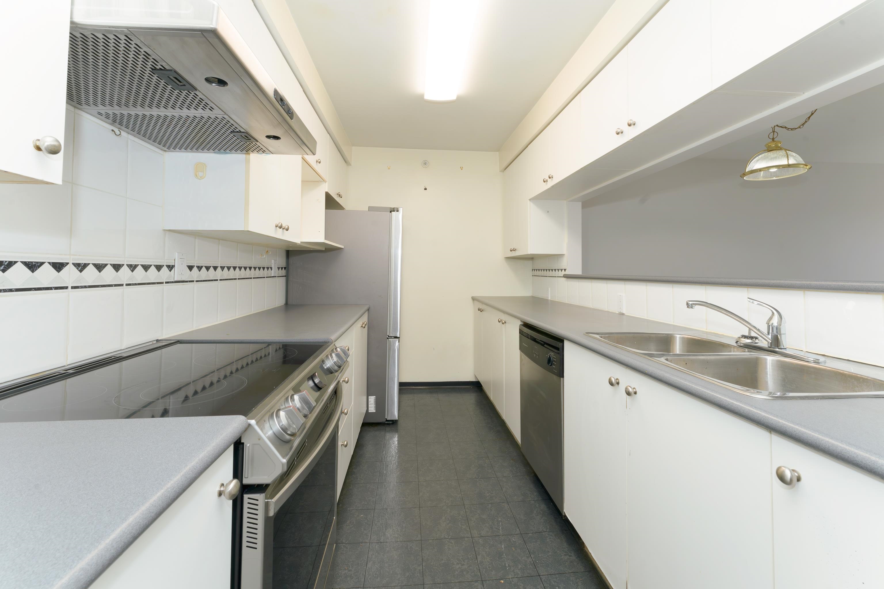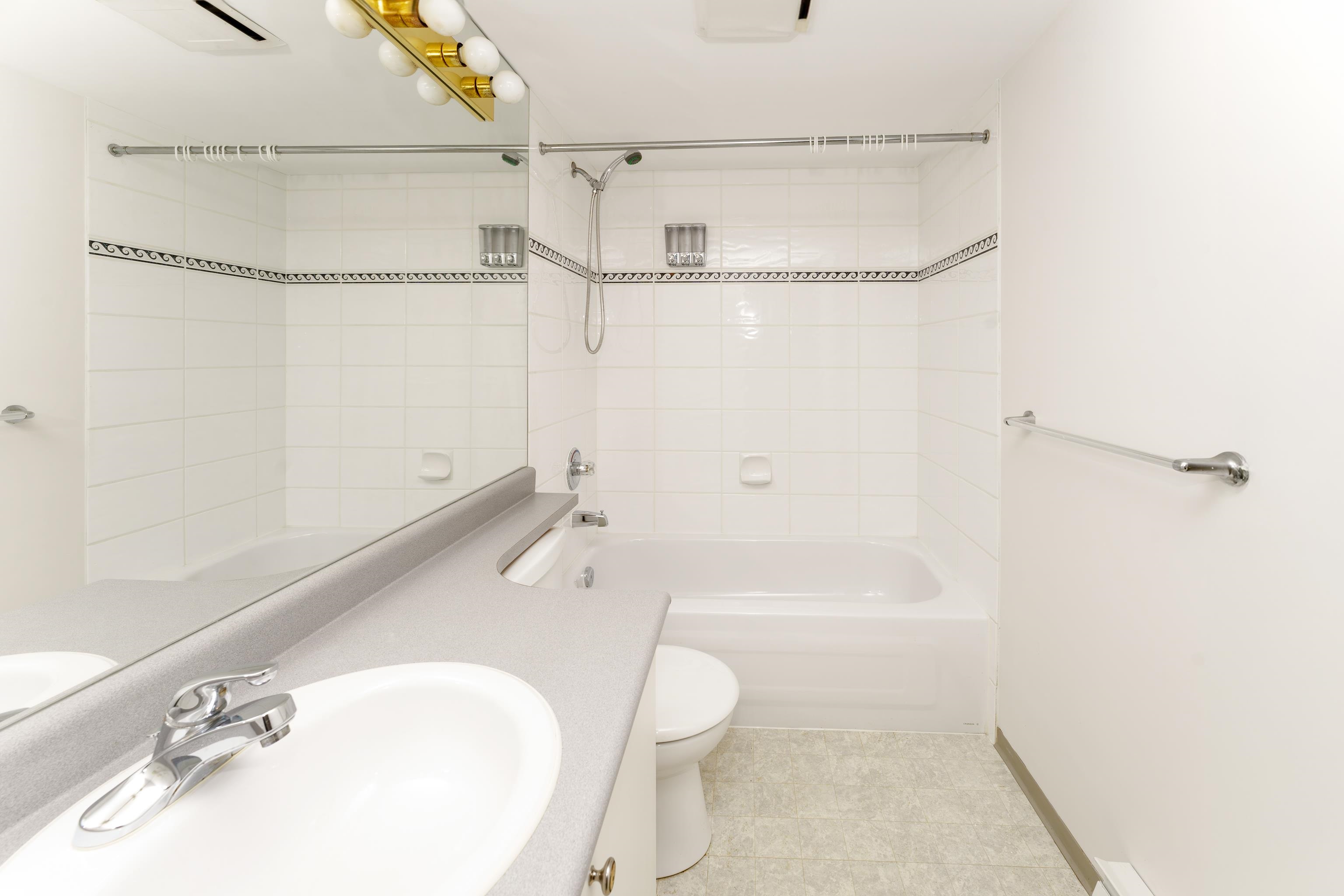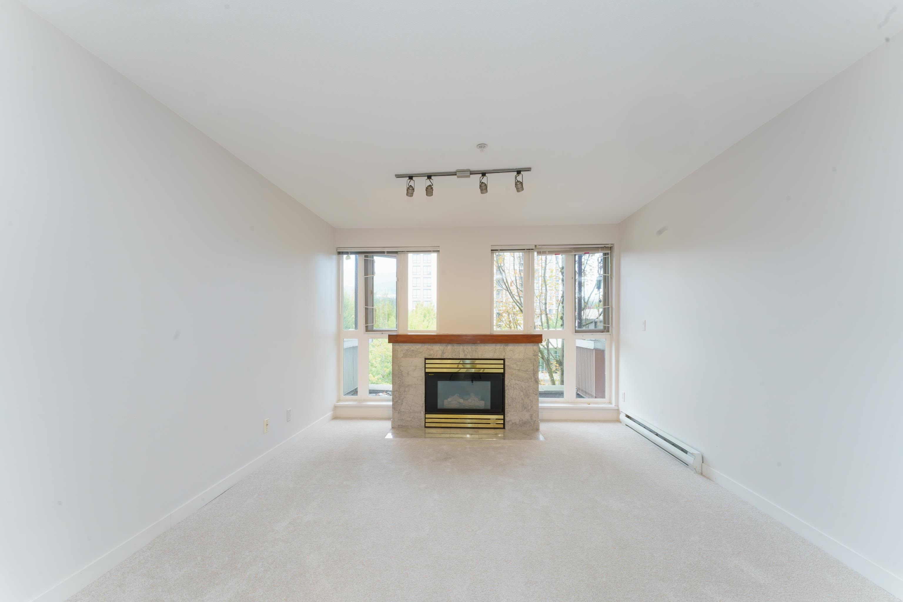PRIME LOCATION! This 2 bed/2 bath penthouse in downtown Coquitlam offers expansive windows, abundant natural light, stunning mountain views, and a cozy gas fireplace. The kitchen boasts updated stainless steel appliances and generous cabinet space. Two spacious bedrooms and two full bathrooms complete the layout. Recently painted and brand new carpet. Enjoy the convenience of being just steps to SkyTrain, Coquitlam Centre, Lafarge Lake, Douglas College, Glen Elementary, Pinetree Secondary, the Aquatic Cent...